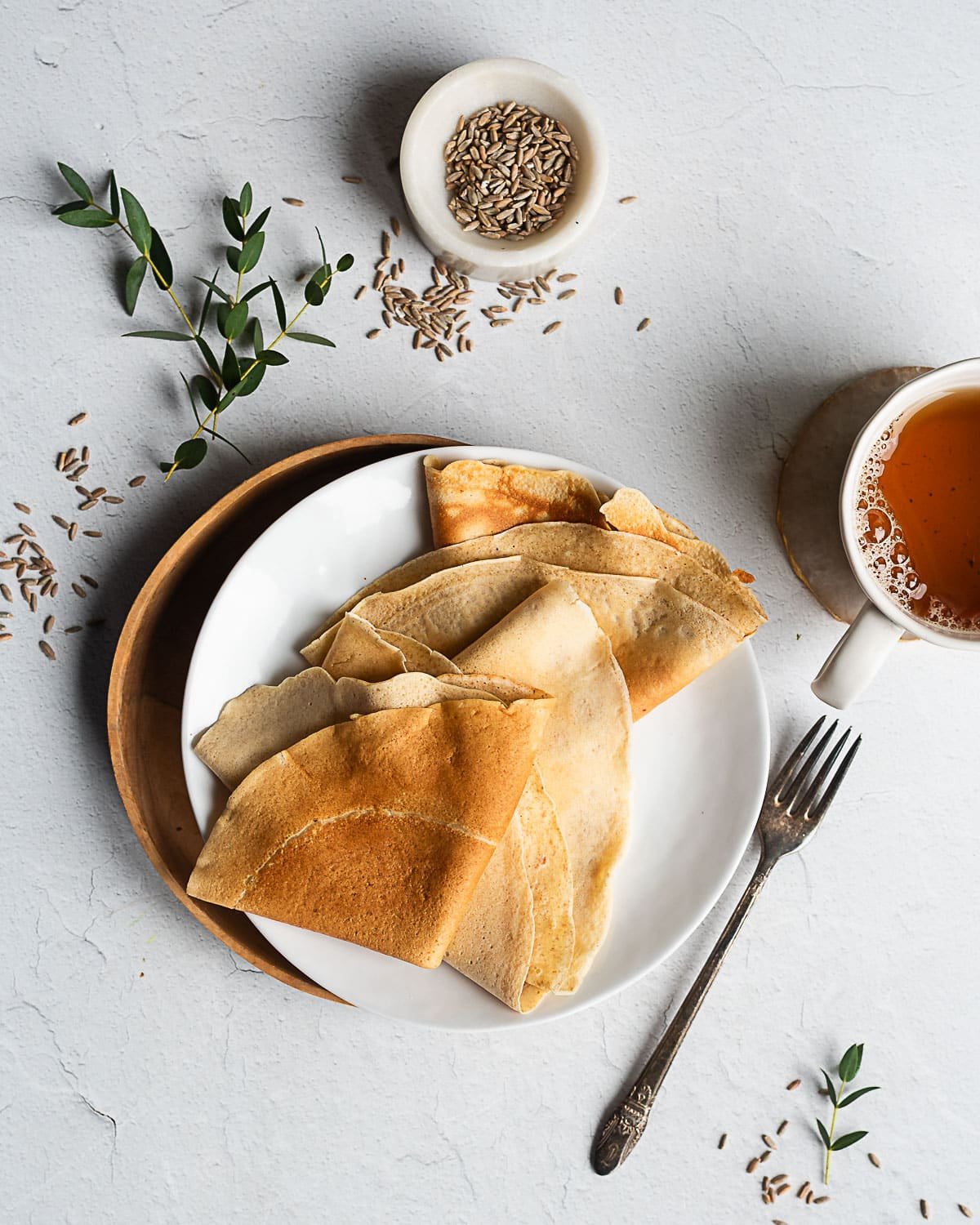 Whole-grain Rye Flour: Rye gives the crêpes texture and a rich, robust flavor. I typically grind my rye berries fresh, just before mixing the batter for the best flavor. Store-bought rye flour works just as well.